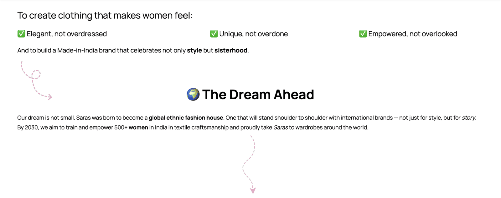 Our dream is not small. Saras was born to become a global ethnic fashion house. One that will stand shoulder to shoulder with international brands — not just for style, but for story.