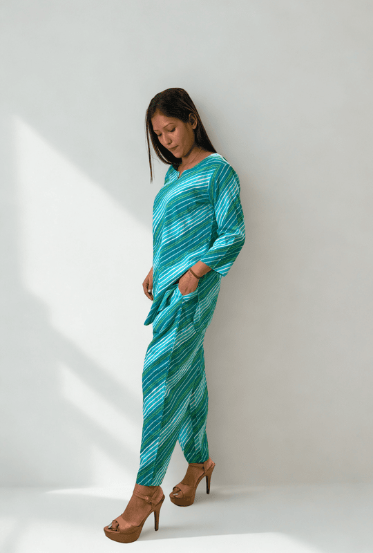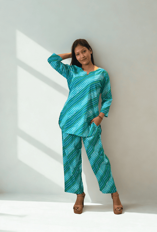 Striped Bandhani Print Pure Cotton Co-ord Set for Women