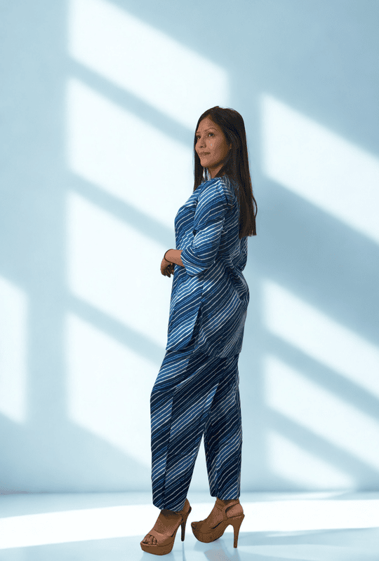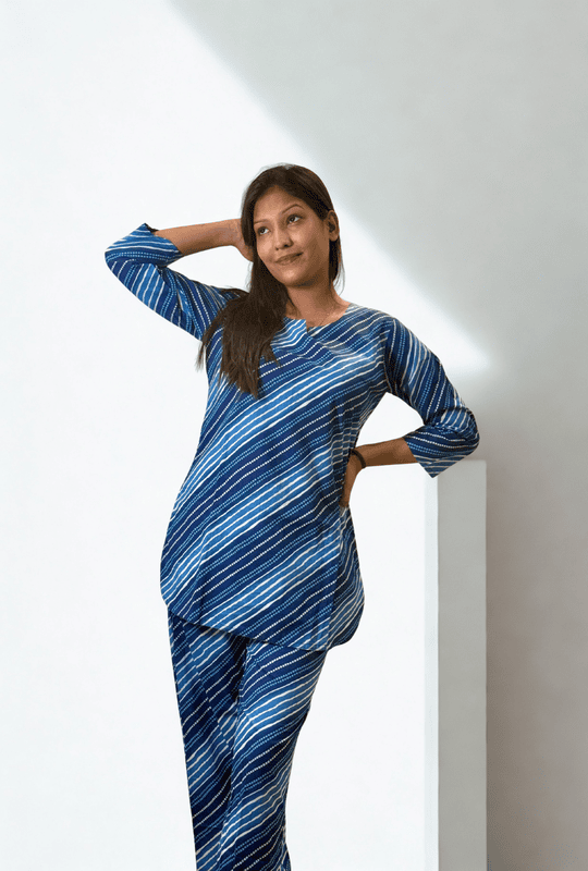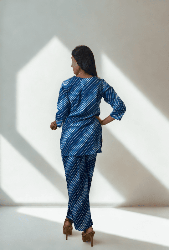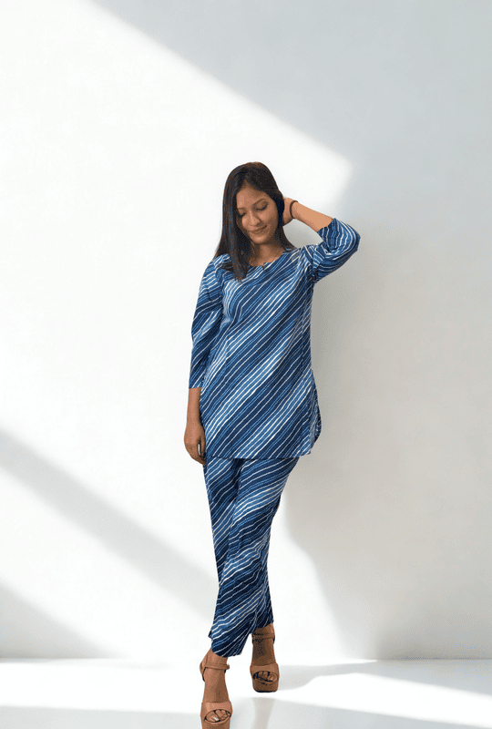 This striped cotton co-ord set is a wardrobe essential that combines comfort, versatility, and timeless style. Pair it with flats for an easy-going day look or dress it up with statement earrings for chic evenings.